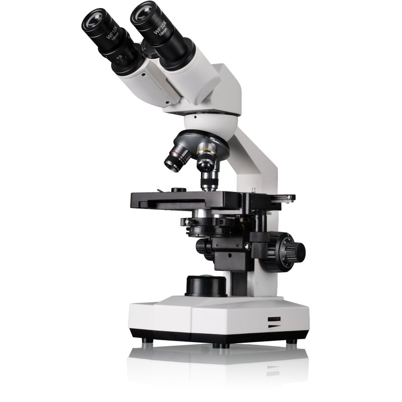 O BRESSER Erudit Basic Bino é um microscópio biológico versátil, equipado com cabeça binocular, que permite observar com ambos os olhos de forma mais confortável e ergonómica, melhorando significativamente a perceção de detalhe. Graças à sua ótica de alta qualidade, é uma excelente escolha para utilização em contexto escolar, educativo ou como hobby.