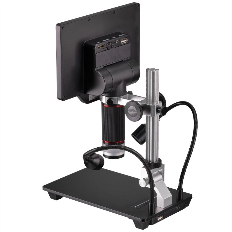 Este microscópio digital é ideal para oficinas, permitindo examinar amostras de materiais, placas de circuito impresso e componentes eletrónicos. Também é útil para medições, controlo de qualidade de superfícies ou testes de matérias-primas, graças ao grande campo de visão e à ampliação adequada através da lente de zoom de alta qualidade. Para aplicações biológicas, permite observar plantas e insetos em detalhe no ecrã LCD a cores de 17,8 cm (7”). É perfeito para identificação de doenças e pragas na horticultura e agricultura, assim como para uso escolar ou amador.