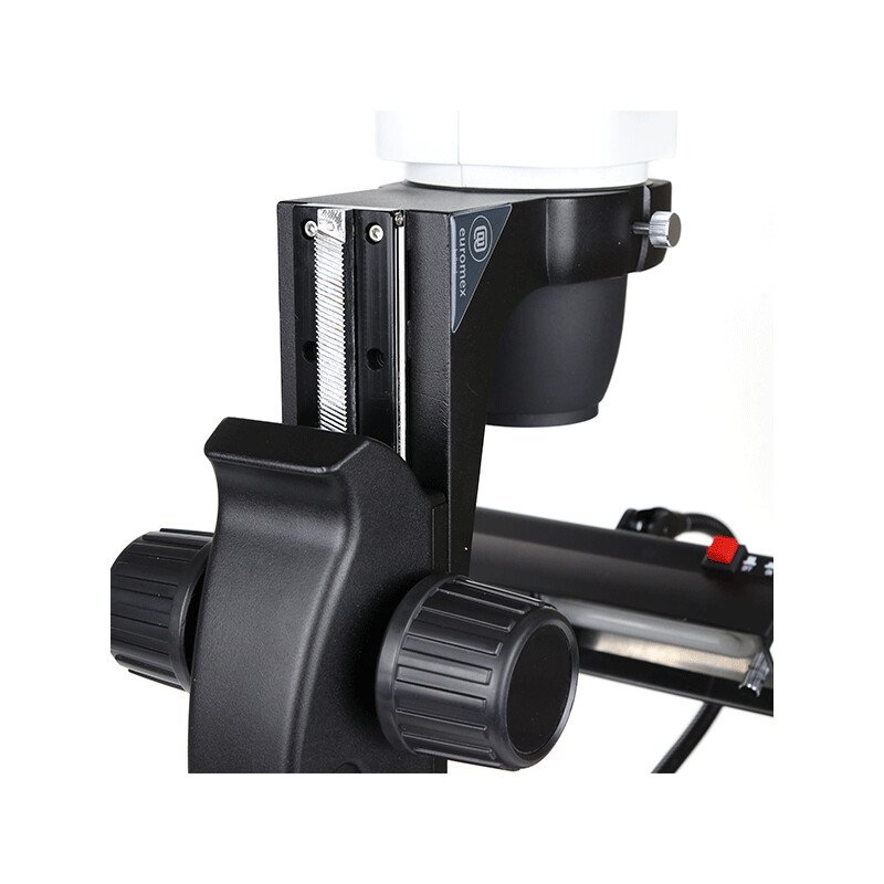 • Tripé de coluna ou braço fixo, com design ergonómico, iluminação LED integrada e duas pinças para fixação de amostras