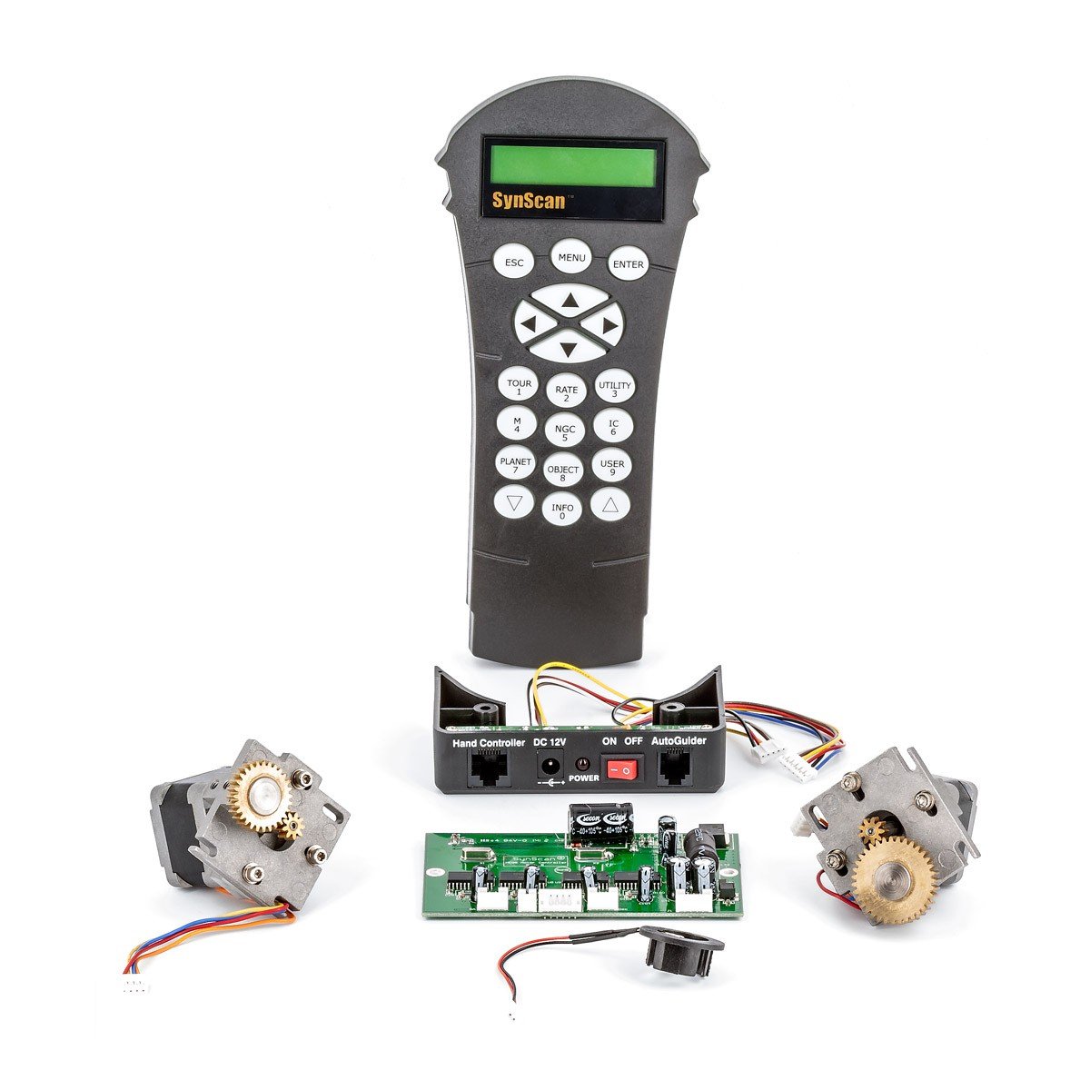 O kit inclui também uma interface de autoguiamento, essencial para astrofotografia. A alimentação elétrica é feita a 12V 3A, através de um cabo com ficha de isqueiro de automóvel. Também é possível utilizar outras opções de alimentação, como um transformador 220V/12V ou um pack de baterias. Este modelo foi desenvolvido exclusivamente para ser instalado em montagens HEQ5 não motorizadas.