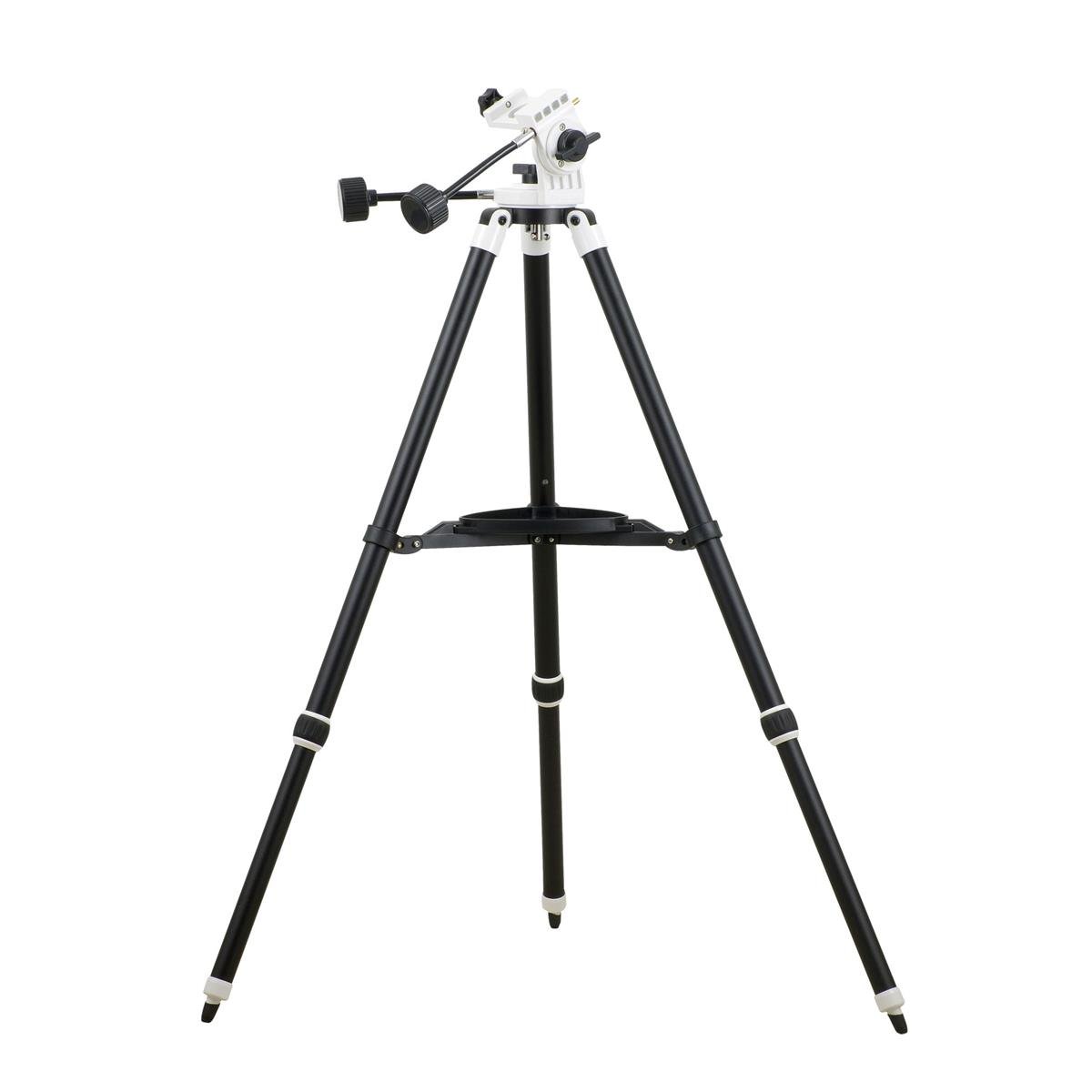 O tripé retrátil em alumínio é facilmente transportável, tornando este conjunto (montagem + tripé) a escolha ideal para observadores nómadas.