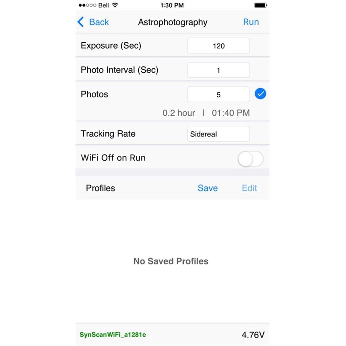 A montagem só pode ser controlada via Wi-Fi através de uma aplicação gratuita disponível para smartphones (iOS / Android): a Console SAM. Esta aplicação, disponível em francês, permite configurar e gerir todos os parâmetros e funcionalidades da montagem. Pode consultar mais detalhes sobre a aplicação aqui: