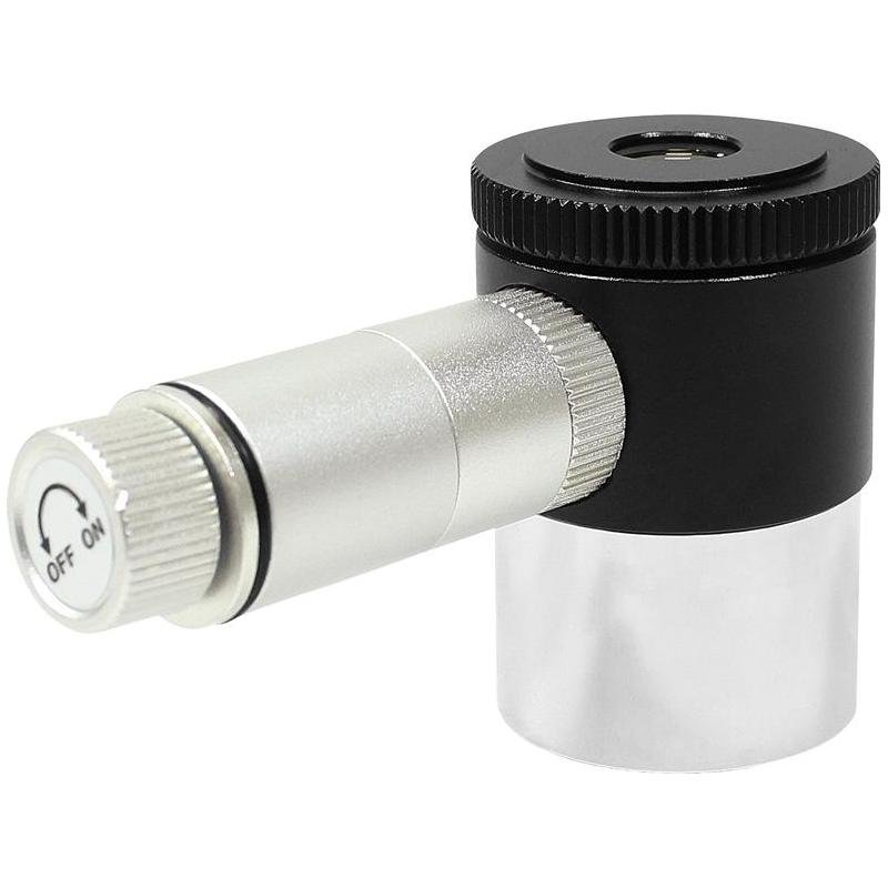 O fio (retículo) é iluminado com luz LED vermelha e é regulável gradualmente através de um botão (manipulo) rotativo lateral. Para que veja tanto a estrela como o fio (retículo) com a nitidez exata, a ocular dispõe de uma correção de dioptrias rotativa.