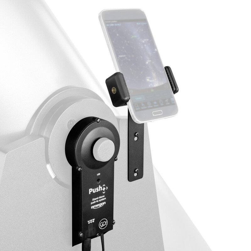 - Instalação do sistema para localizar objetos celestes com a tecnologia Push-to-Find para os telescópios Omegon Advanced X, GSO Classic, Orion SkyQuest Dobson e ICS Galaxy Dobson