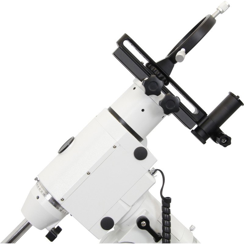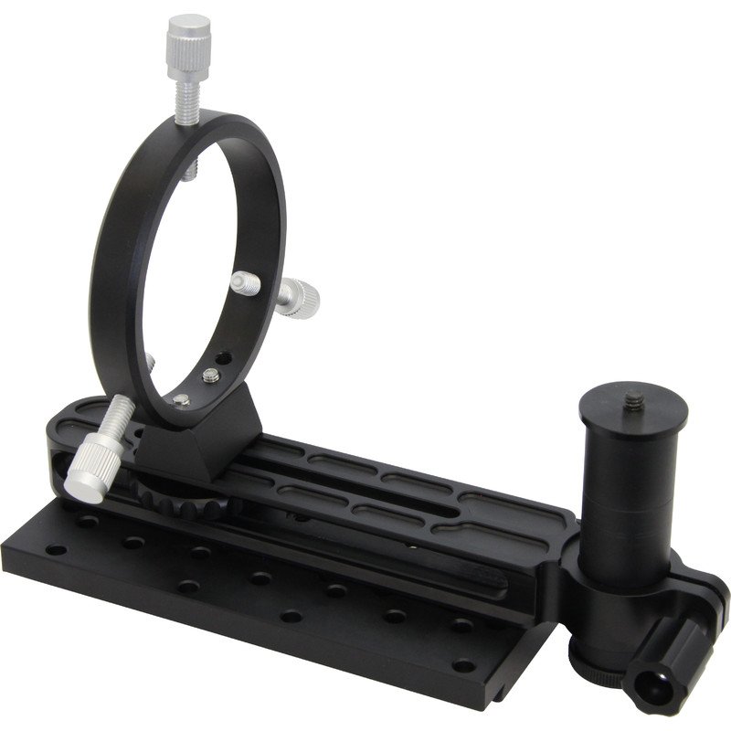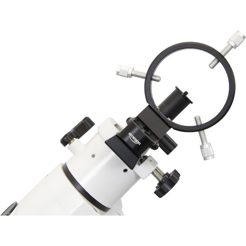 O Omegon Halterung fixa câmaras com lentes grandes ou pequenos telescópios (como aqueles com abertura de 60 mm) de forma firme e estável em uma montagem, facilitando capturas de motivos que exigem longos tempos de exposição.
