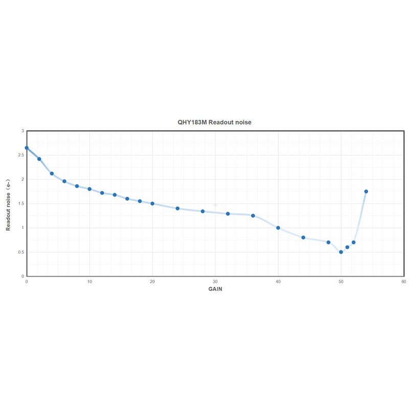 A QHY183 é um modelo concebido para principiantes em astrofotografia. Apresenta uma excelente sensibilidade e baixo ruído, sendo que a versão com sensor retroiluminado 183 oferece uma sensibilidade superior e uma resolução ligeiramente mais elevada. É particularmente adequada para imagem planetária e de espaço profundo, especialmente quando utilizada em conjunto com a roda de filtros CFW3. Este modelo possui arrefecimento termoelétrico de dois estágios, reduzindo a temperatura do sensor até cerca de 40 graus Celsius abaixo da temperatura ambiente, para uma redução máxima do ruído de corrente escura em exposições longas.