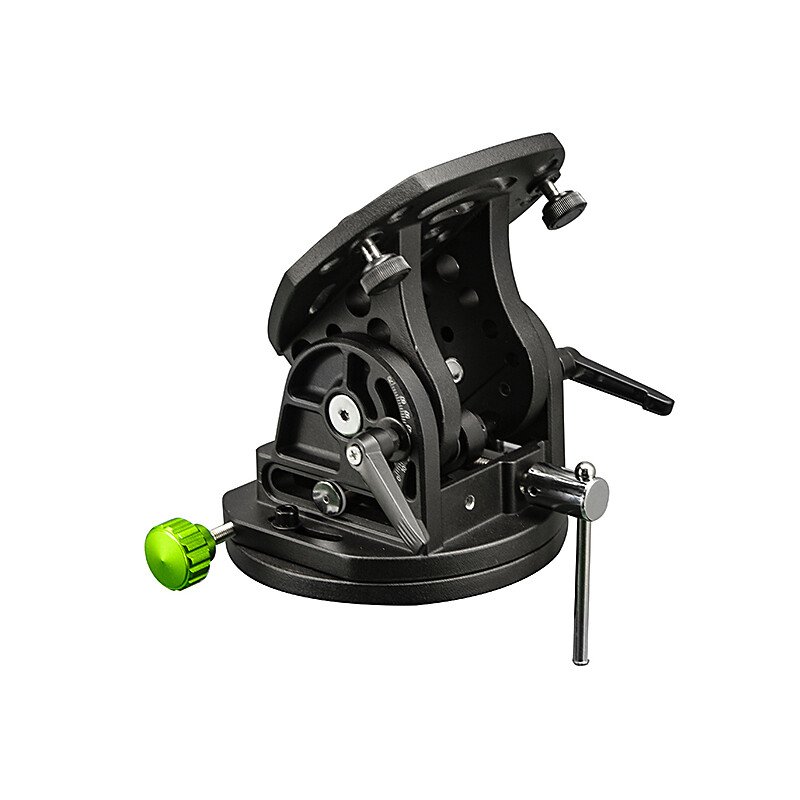 A base de altitude polar é instalada entre o tripé e a cabeça de montagem ou de rastreio, permitindo ajustar o sistema para alinhamento polar. Assim, o eixo de rotação da unidade de rastreamento fica paralelo ao eixo da Terra, garantindo um seguimento preciso do movimento celeste.
