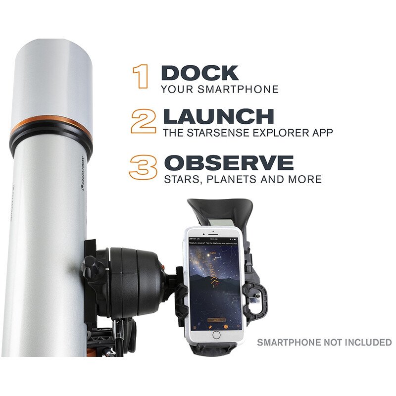 O StarSense Explorer é compatível com a maioria dos smartphones modernos, incluindo iPhones 6 ou mais recentes e a maioria dos dispositivos Android com a versão 7.1.2 ou posterior, fabricados desde 2016. Para consultar a lista completa de compatibilidade, clique aqui.