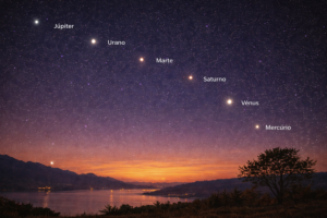 Embora frequentemente descrito como um “alinhamento planetário”, o fenómeno corresponde, na realidade, a uma disposição aparente dos planetas vista da Terra, e não a um alinhamento físico no espaço.